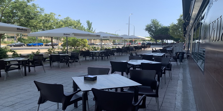 En temporada estival disponemos de terraza exterior, con veinte mesas y ochenta sillas, para poder tomar una refrescante consumición junto a algunos de nuestros platos de cocina al aire libre y así sofocar el intenso calor del verano de Madrid.